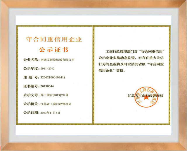 守合同重信用企業公示證書